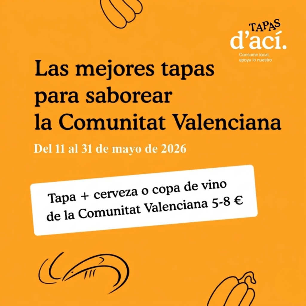 Del 11 al 31 de mayo, los establecimientos hosteleros de la Comunitat Valenciana tendrán una nueva oportunidad para mostrar su creatividad culinaria a través de la tapa, promoviendo el consumo de proximidad y la riqueza del recetario valenciano.